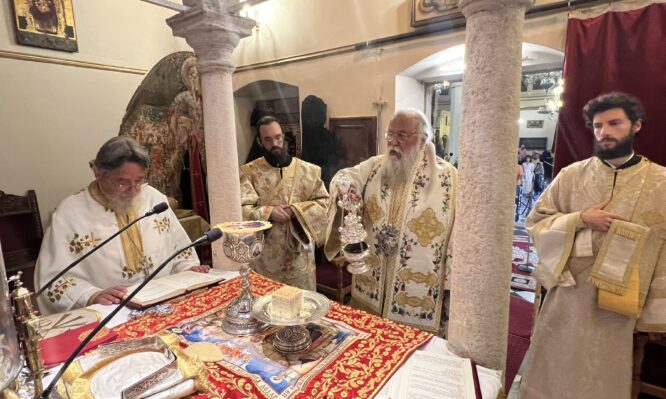 Την Κυριακή, 8 Ιουνίου 2025, Κυριακή της Πεντηκοστής, ο Σεβασμιώτατος Μητροπολίτης Κερκύρας, Παξών και Διαποντίων Νήσων, κ. Νεκτάριος, λειτούργησε, ομίλησε και τέλεσε τον εσπερινόν της γονυκλισίας, στον Ιερό Μητροπολιτικό Ναό της Υπεραγίας Θεοτόκου Σπηλαιωτίσσης στο κέντρο τηςΚέρκυρας. Μαζί με το Σεβασμιώτατο, λειτούργησαν ο Προϊστάμενος του Ιερού Μητροπολιτικού Ναού και Αρχιερατικός Επίτροπος Βορείου Κερκύρας, πρωτ. Σπυρίδων […]