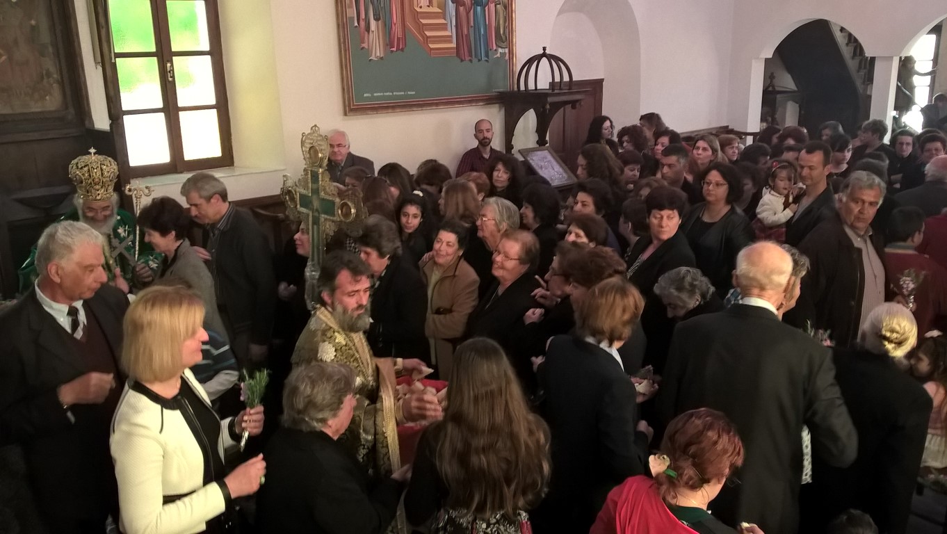Στο τέλος έγινε η έξοδος του Τιμίου Σταυρού, ο οποίος Τίμιος Σταυρός ήταν ευπρεπισμένος με άνθη εντός δίσκου κατά την τάξιν του τυπικού της Μεγάλης του Χριστού Εκκλησίας. Μετά το πέρας, κατά το έθος, ο Μητροπολίτης μοίρασε στο εκκλησίασμα «τα Λέρικα ματσάκια». Το Εσπέρας στον ίδιο Ιερό Ναό χοροστάτησε από το παραθρόνιο στον κατανυκτικό Εσπερινό παρουσία του Ι.Κλήρου και αρκετού εκκλησιάσματος.