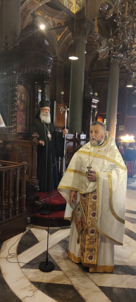 Λειτούργησαν ο Γενικός Αρχιερατικός Επίτροπος πρωτ.π.Ακίνδυνος Δαρδανός μετά του Διακόνου π.Ιωάννου Καρπασινού, του Πανοσ. Πρωτοσυγκέλλου συμπροσευχομένου εν τω Ιερώ βήματι.