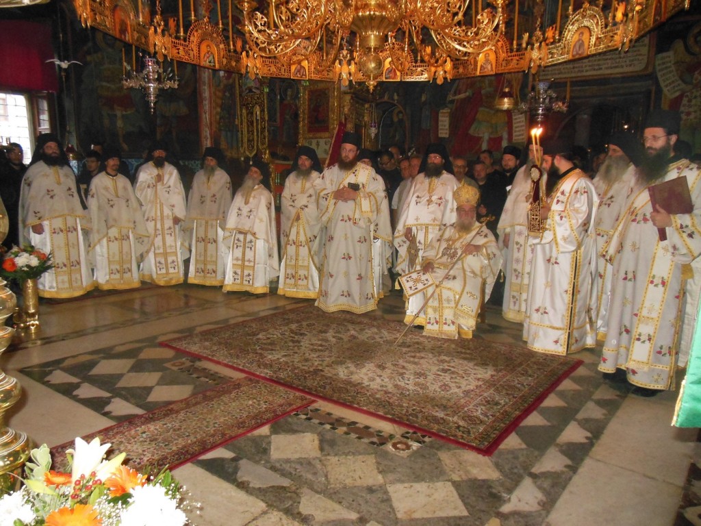 Ο Μητροπολίτης Καρπάθου κ. Αμβρόσιος, προεξήρχε των ακολουθιών που τελέστηκαν σύμφωνα με το αγιορείτικο τυπικό. Παρόντες ήταν πολλοί κληρικοί καθώς και οι Καθηγούμενοι των Ιερών Μονών Αγίου Παύλου κ. Παρθένιος, Φιλοθέου κ. Νικόδημος.