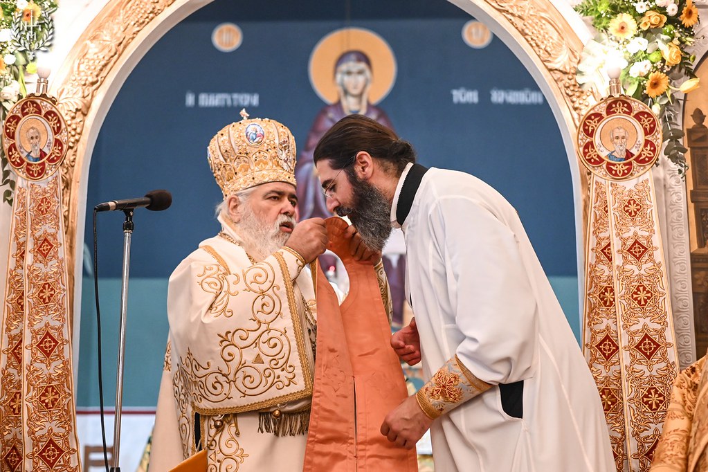 Ανήμερα της πανηγύρεως, Δευτέρα 26 Σεπτεμβρίου 2022, ο κ. Βαρνάβας προεξήρχε της Αρχιερατικής Θείας Λειτουργίας, κατά την οποία τέλεσε την εις πρεσβύτερον χειροτονία του διακόνου Σεραφείμ Τερζή, υπευθύνου του ιδιαιτέρου γραφείου του. Στον εμπνευσμένο και συγκινητικό λόγο του, ο Σεβασμιώτατος αναφέρθηκε καταρχήν στο πρόσωπο του Ηγαπημένου μαθητού του Κυρίου μας και στα γεμάτα αγάπη και ελπίδα κείμενά του, αφού δίκαια ο Άγιος αποκαλείται ως ο Ευαγγελιστής και Απόστολος της Αγάπης. Υπογράμμισε δε τη διάθεση προσφοράς, θυσίας και αγάπης που οφείλει να έχει ο κάθε Χριστιανός προς τον αδερφό του και προέτρεψε τον νέο πρεσβύτερο να έχει ως πρότυπο στην ιερατική ζωή του τον μεγάλο αυτόν Απόστολο, ώστε να μπορεί να πλοηγηθεί με ασφάλεια, όπως χαρακτηριστικά τόνισε, στο δύσκολο ταξίδι που σήμερα ξεκινάει, στο έργο της διακονίας του Θεού και του πλησίον, έχοντας ως κιβωτό και άγκυρα τον δωρεοδότη Κύριο ημών Ιησού Χριστό, την Παναγία Μητέρα του, και τους Αγίους.