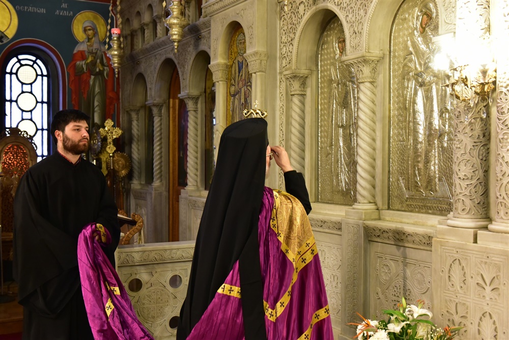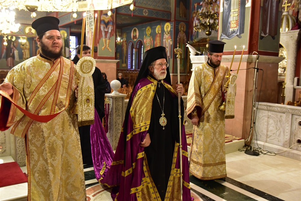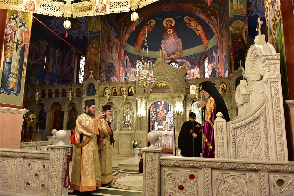 Τον Σεπτό Αρχιερέα της Πρωτοθρόνου και Αγίας του Χριστού Μεγάλης Εκκλησίας, πλαισίωναν κατά την διάρκεια της Θείας Λειτουργίας, ο Καθηγούμενος της Ιεράς Μονής Αγίας Τριάδος Πέντε Βρύσεων, Πανοσιολογ. Αρχιμ. π. Αμβρόσιος Πουτούκης, ο Γενικός Αρχιερατικός Επίτροπος Μητροπόλεως Λαγκαδά, Αιδεσιομολ. Πρωτοπρεσβύτερος του Οικουμενικού Θρόνου, π. Αναστάσιος Παρούτογλου, καθώς και Ιερείς και Διάκονοι της Θεοσώστου ημών Επαρχίας, ενώ εκ του Ιερού Βήματος παρέστη συμπροσευχόμενος ο επιχώριος Μητροπολίτης Λαγκαδά, Λητής και Ρεντίνης κ.κ. Ιωάννης.