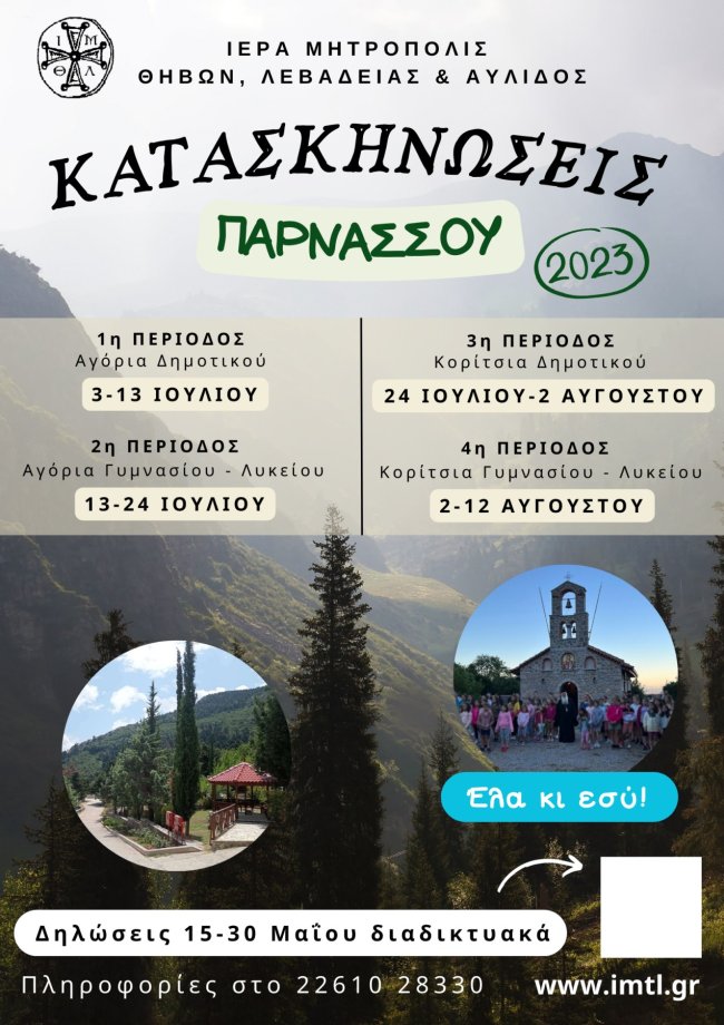 Η Μητρόπολη Θηβών ανοίγει τις πύλες της για τη θερινή Κατασκηνωτική Περίοδο, αγοριών και κοριτσιών, σύμφωνα με το κάτωθι Πρόγραμμα: