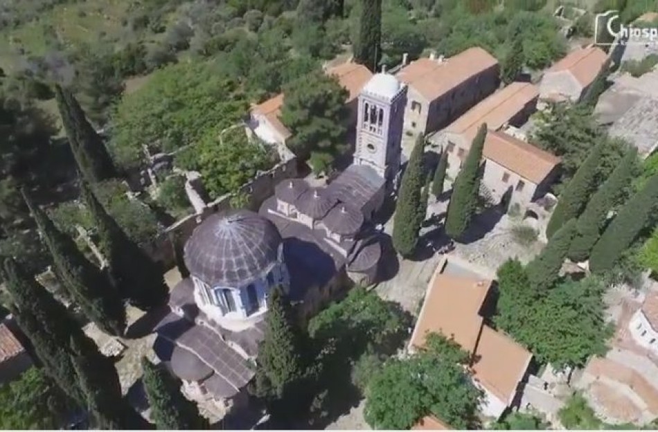 Η Νέα Μονή χτίστηκε τον 11ο αιώνα (ανάμεσα στο 1042-1056) και αφιερώθηκε στην Κοίμηση της Θεοτόκου. Καλύπτει μια έκταση 17000 τετραγωνικών μέτρων περίπου και βρίσκεται στο κέντρο του νησιού.