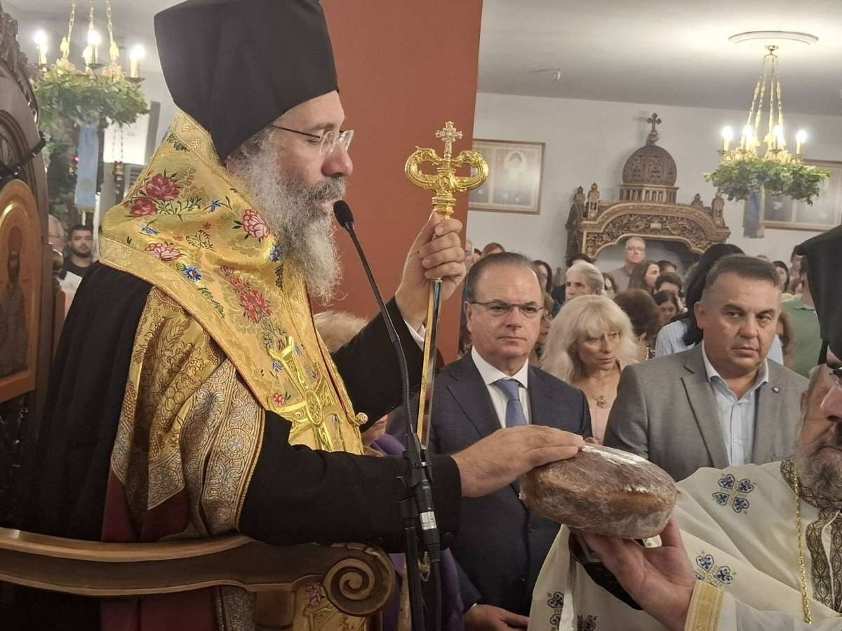 Στη συνέχεια, ο Σεβασμιώτατος Ποιμενάρχης κ. Πρόδρομος εξέφρασε τη δοξολογία του στο Θεό και τη χαρά του για το «θαύμα, το οποίο ζήσαμε», όπως σημείωσε, τονίζοντας ότι για να πραγματοποιηθεί το θαύμα πρέπει πραγματικά να πιστέψομε σε αυτό με όλη τη δύναμη της ψυχής μας. Ο Σεβασμιώτατος ευχαρίστησε τον καλό Εφημέριο, π. Γεώργιο, καθώς και όλους, όσοι συνέδραμαν, κατά τη διάρκεια αυτής της εικοσαετίας, για να φθάσομε μέχρι το σημείο αυτό, προσβλέποντας και στην πρόοδο και ολοκλήρωση του σπουδαίου αυτού για την Τοπική μας Εκκλησία έργου. Επίσης, ο Σεβασμιώτατος αναφέρθηκε με ευγνωμοσύνη στον αοίδιμο Μητροπολίτη Άνθιμο Συριανό, καθώς και στη δωρήτρια του οικοπέδου, μακαριστή Ελένη Λαγουδάκη, και ευχαρίστησε τους πολυπληθείς προσκυνητές και τους άρχοντες του τόπου για την παρουσία και συμμετοχή τους στη χαρά της Πανηγύρεως, τονίζοντας το παράδειγμα που μας δίνει η Θεοτόκος η Δεομένη, δηλαδή να δεόμαστε διαρκώς και να απευθύνομε σύνολη τη ζωή μας στον Θεό.