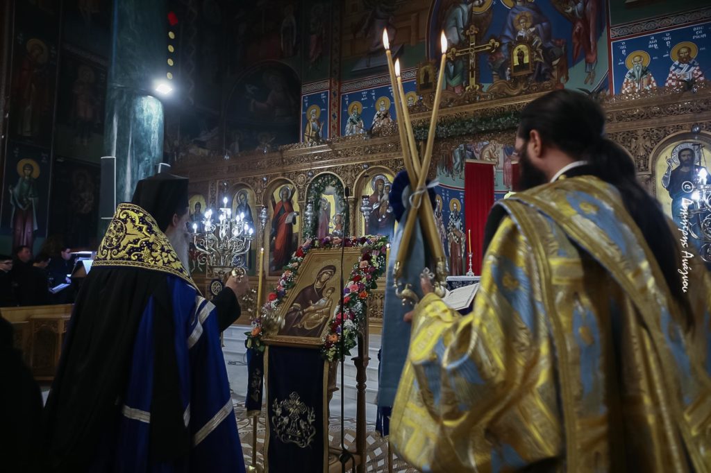 Με ιδιαίτερη ευλάβεια και δέος εψάλη απόψε στον κατάμεστο από πιστούς Ιερό Μητροπολιτικό Ναό Ευαγγελισμού της Θεοτόκου Λαμίας η Ιερά Ακολουθία του Ακαθίστου Ύμνου.