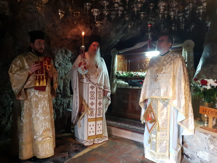 Όπως είναι γνωστό την Τρίτη της Διακαινησίμου, έκαστου έτους, εορτάζεται η επανεύρεση του Ιερού Σκηνώματος του Οσίου Πατρός ημών Παταπίου στην ομώνυμη Ιερά Γυναικεία Κοινοβιακή Μονή, στο Λουτράκι. Ανήμερα της Εορτής, Τρίτη της Διακαινησίμου, 22 Απριλίου 2025, ο Ιεροκήρυκας της Ι. Μητροπόλεως μας Πανοσ. Αρχιμ. π. Άνθιμος Παπαλεξόπουλος, Ηγούμενος της Ι. Μονής Παναγίας «ΠΑΝΤΩΝ ΧΑΡΑ» Καλεντζιου τέλεσε Πανηγυρική Θ. Λειτουργία, στην οποία παρέστησαν και συλλειτούργησαν ο Πανοσ. Αρχιμ. π. Χρυσόστομος Φερεντίνος, Εφημέριος Ι. Ναού Αγίου Παντελεήμονος Αλαμάνου και ο Αρχιδιάκονος της Ι. Μητροπόλεως μας π. Χρήστος Χίλιας.