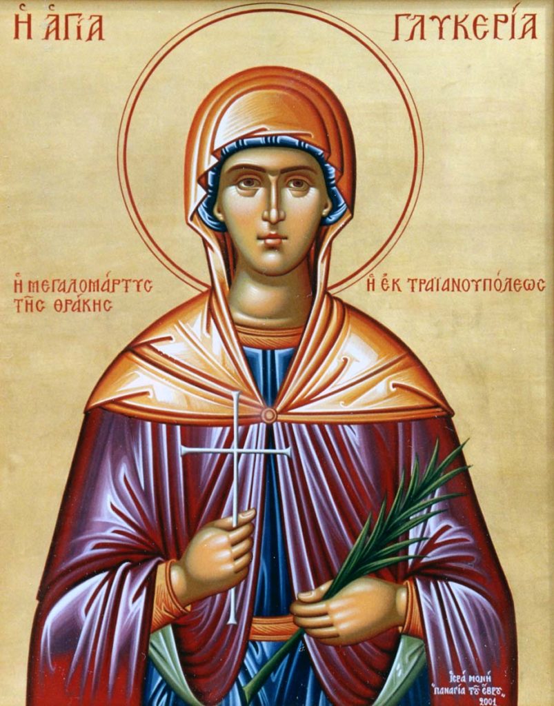 Το προσεχές Σάββατο 13 Μαΐου, η τοπική μας Εκκλησία τιμά και εορτάζει την συμπατριώτισσά μας Αγία μεγαλομάρτυρα Γλυκερία, που γεννήθηκε στην Τραϊανούπολη και μαρτύρησε τον 2ο αιώνα μ.Χ. στην Ηράκλεια της Ανατολικής Θράκης. Στην Μητρόπολή Αλεξανδρουπόλεως πανηγυρίζει ο ομώνυμος Ιερὸς Ναὸς στα Λουτρὰ Τραϊανουπόλεως, τον τόπο καταγωγής της Αγίας.