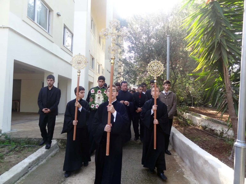 Μετά το πέρας της θείας λειτουργίας, ακολούθησε η καθιερωμένη λιτάνευση της εικόνας του αγίου κι επιμνημόσυνη δέηση επί του τάφου του κτήτορος της Σχολής, του μακαριστού αρχιερέως Νικηφόρου.