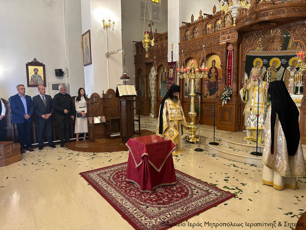 Στην Ακολουθία του Εσπερινού και στην Αρχιερατική Θεία Λειτουργία της πρώτης Ανάστασης έλαβαν μέρος ο Πανοσιολ. Αρχιμ. Αμβρόσιος Σκαρβέλης, Πρωτοσύγκελλος της Ι. Μητροπόλεως, ο Πανοσιολ. Αρχιμ. Πορφύριος Αγγελάκης, Εφημέριος και προϊστάμενος του ναού, και ο Διάκονος Θεμιστοκλής Μπεϊνάς. Eκκλησιάσθηκαν ο Δήμαρχος Ιεράπετρας κ. Εμμανουήλ Φραγκούλης, οι Αντιδήμαρχοι κ. Γεώργιος Κουγιουμουτζάκης και κ. Μαρίνα Αχλάτη, ο Δ/κτής του Τμήματος Ασφάλειας Ιεράπετρας κ. Νεκτάριος Φρονιμάκης, ο Δημοτικός Σύμβουλος κ. Κωνσταντίνος Αστροπεκάκης, και πλήθος ευσεβών χριστιανών, οι πλείστοι των οποίων μετέλαβαν των Αρχάντων Μυστηρίων.
