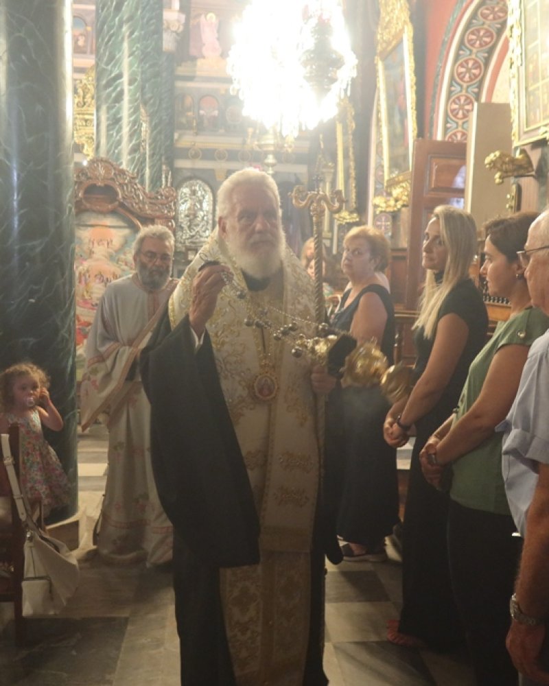 Τέλος, συνεχάρη τον Εφημέριο του Ναού, Πρωτοπρ. Κωνσταντίνο Κοντό για το έργο του και τη μέριμνά του για το Ναό, καθώς και τους συνεργάτες του, Επιτρόπους, Ιεροψάλτες και διακονητές και ευχήθηκε σε όλους για τον αρξάμενο Παναγιωνυμο μήνα Αύγουστο.