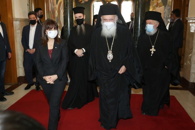 Ο Αρχιεπίσκοπος ευχαρίστησε την Πρόεδρο για την ευγενική της σκέψη να επισκεφθεί την Αρχιεπισκοπή αποδεικνύοντας με τον τρόπο αυτό, τον σεβασμό και την τιμή αυτής προς την Ορθόδοξη Εκκλησία. «Εκκλησία, η οποία πολλά και ποικίλα πνευματικά και υλικά αγαθά προσέφερε στο Ελληνικό Έθνος και το Ελληνικό Κράτος κατά τους χρόνους της σκλαβιάς, κατά τους χρόνους των απελευθερωτικών αγώνων, αλλά και στη συνέχεια από το 1821 έως σήμερα, 2021, έτος κατά το οποίο πανηγυρικώς εορτάζουμε τα 200 χρόνια από την απελευθέρωσή μας» τόνισε ο Αρχιεπίσκοπος.