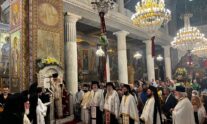 Νωρίτερα, τελέσθηκε πανηγυρική θεία λειτουργία στον μητροπολιτικό ναό Κοιμήσεως της Θεοτόκου και στη συνέχεια, με πομπή, κλήρος και λαός κατευθύνθηκαν στο σημείο όπου γίνεται κάθε χρόνο η κατάδυση του Σταυρού.