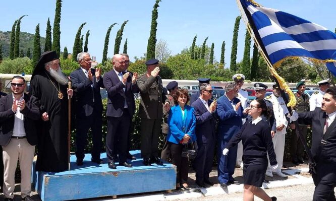 Στή συνεχεία ἀπό τῆς ἐξέδρας παρηκολούθησε Μαθητική καί Στρατιωτική παρέλαση.
