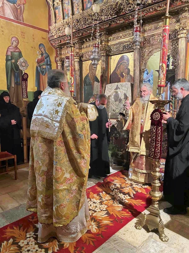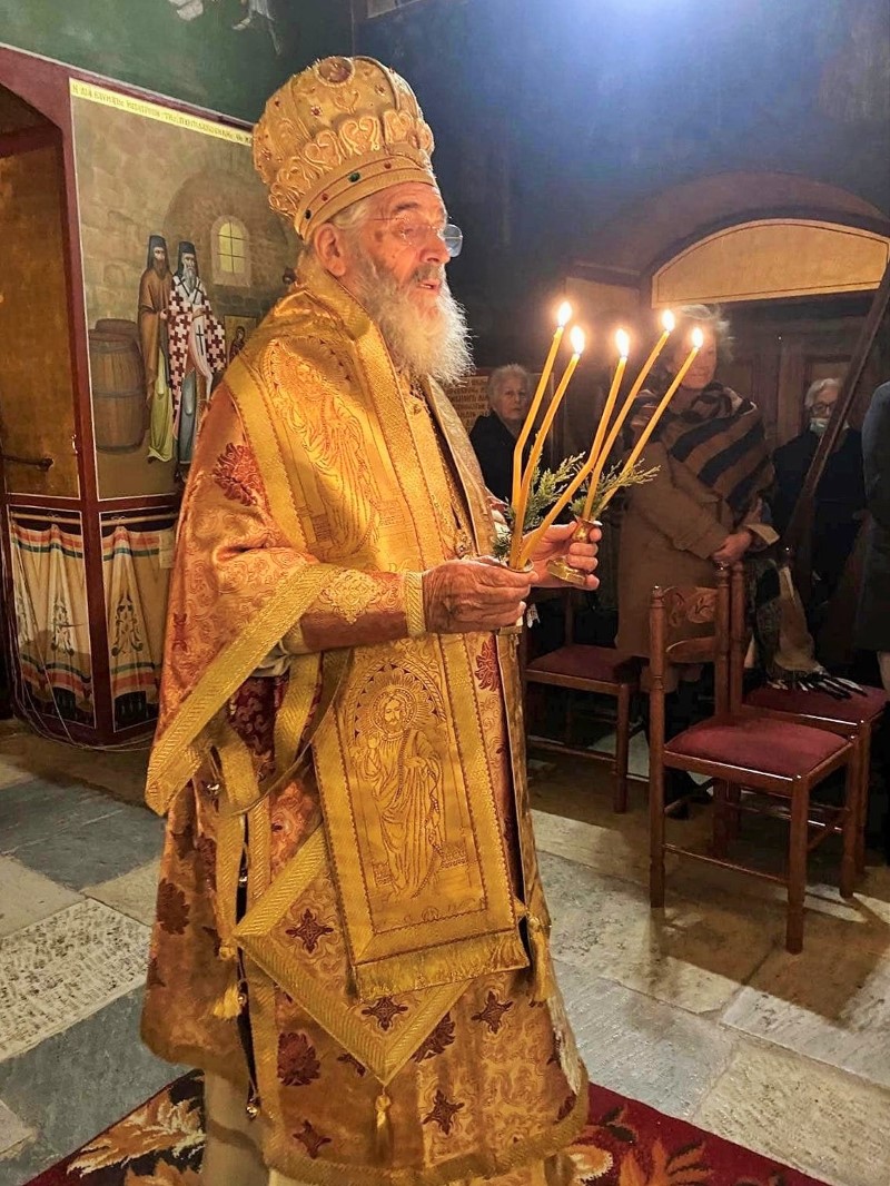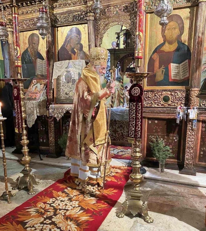 Την Δευτέρα 26Δεκεμβρίου 2022, στον Ιερό Ναό της Παναγίας του Κάστρου Λέρου, ετελέσθη η Ακολουθία του Όρθρου και Αρχιερατική Θεία Λειτουργία, υπό του Σεβασμιωτάτου Μητροπολίτου μας κ.κ. Παϊσίου, συμπροσευχομένου του Θεοφιλεστάτου Επισκόπου Στρατονικείας κ.Στεφάνου, συμπαραστατουμένου υπό του Αρχιερατικού Επιτρόπου πρωτ. Νικοδήμου Φωκά, παρουσία της Καθηγουμένης της Ι.Μονής Αγίων Αγγέλων Μοναχής Παρασκευής, της Μοναχής Ευλογίας, του Δημάρχου Μ.Κόλια, του Δκτού ΥΝΤΕΛ Α/ρχου Κ.Συρόπουλου ΠΝ, και αρκετών προσκυνητών. Στο ιερό αναλόγιο έψαλλαν κατανυκτικά οι ιεροψάλτες Ισίδωρος Λιβανός και Χρήστος Ασβεστάς.