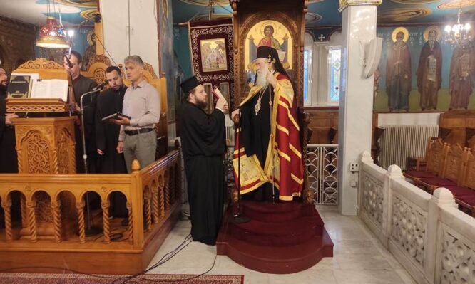 Στον Ι. Ναό Κοιμήσεως της Θεοτόκου Ιωνίας (Συνοικισμού) Κορίνθου λειτούργησε την Παρασκευή, 26 Δεκεμβρίου 2025, επί τη εορτή της συνάξεως της Υπεραγίας Θεοτόκου, ο Σεβασμιώτατος Μητροπολίτης μας κ. Παύλος, πλαισιούμενος από τον Πανοσ. Αρχιμ. π. Δαμασκηνό Γεννηματά, Εφημέριο του Καθεδρικού Ι. Ναού Απ. Παύλου Κορίνθου, τον Αιδεσ. Πρωτ/ρο π. Ιωάννη Δελημπαλτά, Προϊστάμενο του Ι. Ναού, […]
