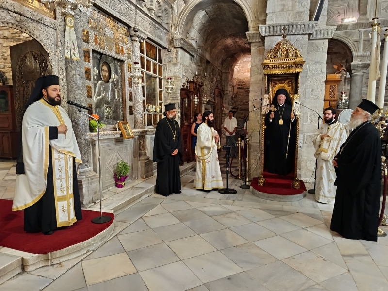 Ο Θεοφιλέστατος χοροστάτησε στον Εσπερινό και εν συνεχεία στην Ακολουθία του Μικρού Παρακλητικού Κανόνος, πλαισιούμενος από τον Πρωτοσυγκελλεύοντα της Ιεράς Μητροπόλεως, Αρχιμ. Δωρόθεο Βενετσανόπουλο, ο οποίος και κήρυξε τον θείο λόγο, τους Εφημερίους του Ιερού Προσκυνήματος, Πρωτοπρ. Στυλιανό Μπιζά και Χρήστο Πετρόπουλο και τους Διακόνους Δαυίδ Καρυτινό και Παναγιώτη Κοσμόπουλο. Προ του «Δι’ ευχών» ο Θεοφιλέστατος απηύθυνε ευχές προς τους εκκλησιαζομένους, εν όψει της Θεομητορικής εορτής της Κοιμήσεως της Υπεραγίας Θεοτόκου.