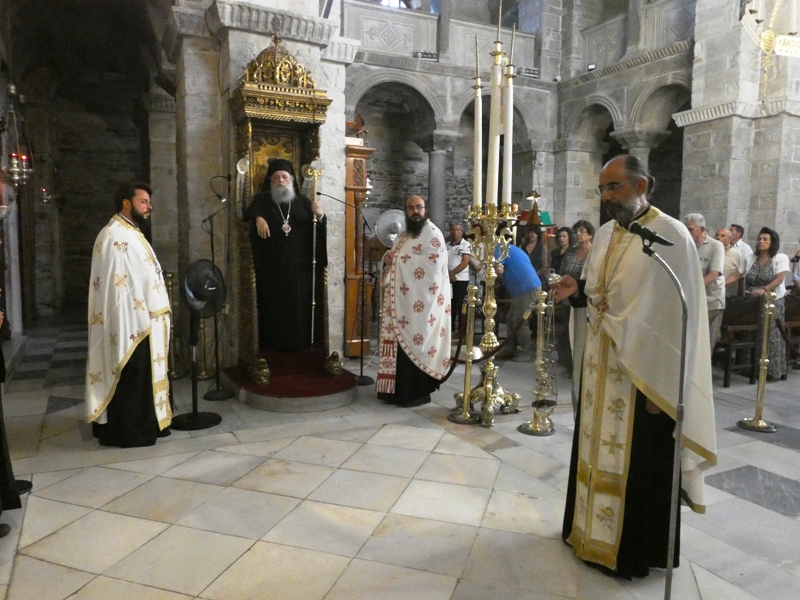 Ο Σεβασμιώτατος χοροστάτησε στον Εσπερινό και εν συνεχεία στην Ακολουθία του Μεγάλου Παρακλητικού Κανόνος, πλαισιούμενος από τον Πρωτοσυγκελλεύοντα της Ιεράς Μητροπόλεως, Αρχιμ. Δωρόθεο Βενετσανόπουλο, τον Ιεροκήρυκα της Ιεράς Μητροπόλεως, Αρχιμ. Αρσένιο Μελισσιανό (ο οποίος και κήρυξε τον θείο λόγο) και τον Προθιερέα του Ιερού Προσκυνήματος, Πρωτοπρ. Στυλιανό Μπιζά.