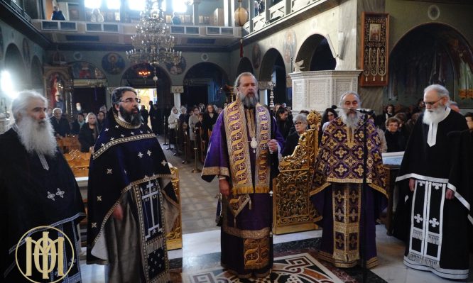 Με ιδιαίτερη κατάνυξη τελέσθηκε η Ακολουθία των Προηγιασμένων Τιμίων Δώρων το απόγευμα της Τετάρτης 25 Φεβρουαρίου στον Ενοριακό Ιερό Ναό Παναγίας της Φανερωμένης Καλλιθέας. Την Προηγιασμένη Θεία Λειτουργία τέλεσε ο Ποιμενάρχης μας, Μητροπολίτης Θεσσαλονίκης κ. Φιλόθεος, συλλειτουργούντων του ιεροκήρυκα της Μητροπόλεώς μας, π. Δημητρίου Τζιαφά, των εφημερίων του Ιερού Ναού, π. Νικολάου Τσέλου, π. Κωνσταντίνου […]