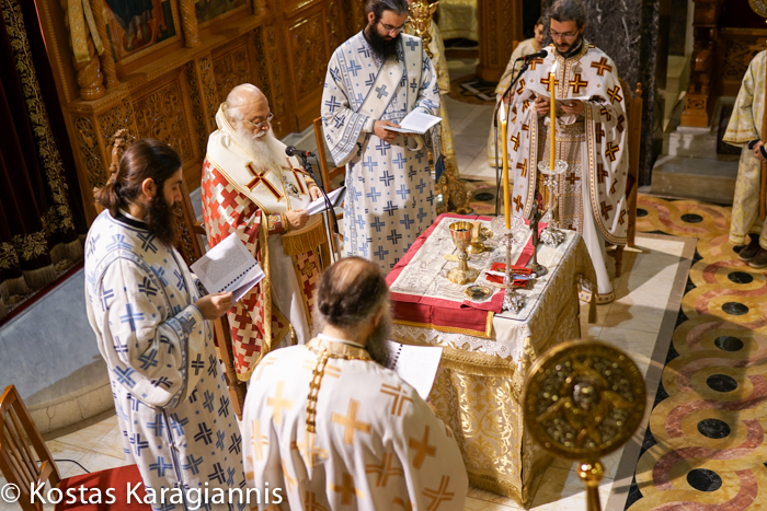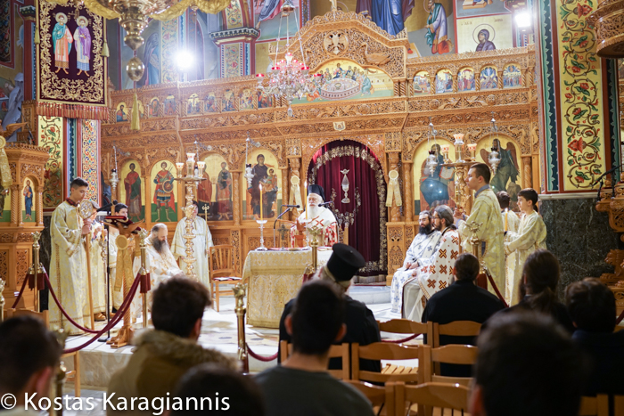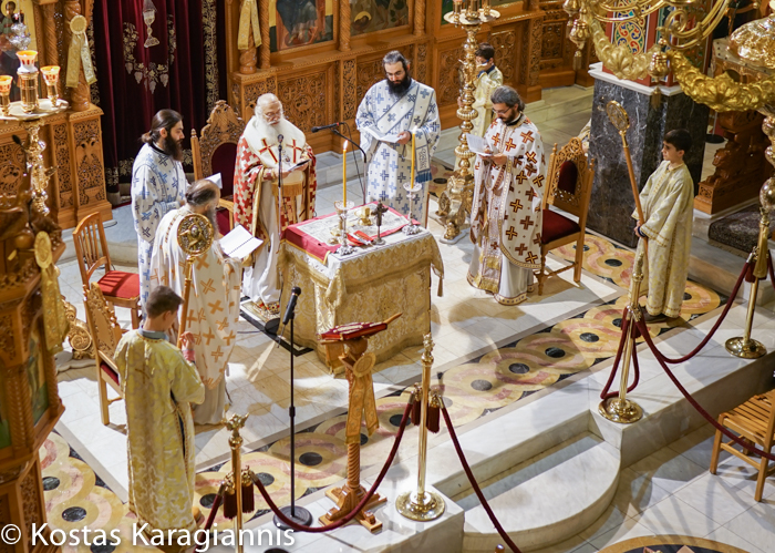 Στη θεία Λειτουργία συμμετείχαν νέοι και νέες από τις κατηχητικές συνάξεις διαφόρων ενοριών, ενώ το θείο λόγο κήρυξε ο Σεβασμιώτατος. Αμέσως, μετά το τέλος της λειτουργίας η ενορία παρέθεσε δείπνο σε όλους τους πιστούς.