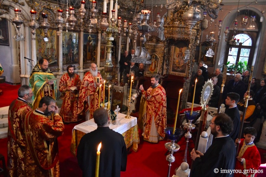 Με την ευλογία του Σεβασμιωτάτου Μητροπολίτη Σύρου, Τήνου, Άνδρου, Κέας και Μήλου κ. Δωροθέου Β’ τελέσθηκε, μετά την Χριστού Γέννησιν, η αρχαιοπρεπής Θεία Λειτουργία του Αγίου Ιακώβου του Αδελφοθέου στον Πανίερο Ναό της Ευαγγελιστρίας στην ιερά νήσο Τήνο.