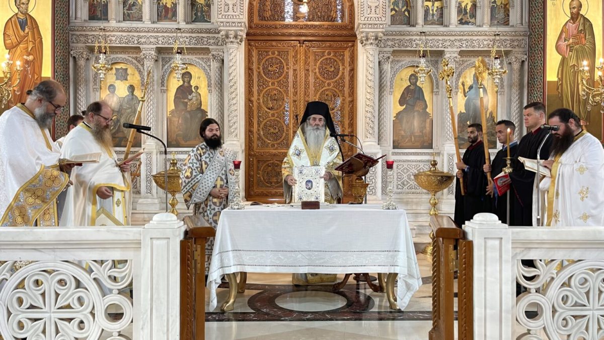 Στον Καθεδρικό Ιερό Ναό Αγίας Τριάδος Πειραιώς, Ιερούργησε σήμερα Κυριακή 29 Οκτωβρίου 2023 ο Σεβασμιώτατος Μητροπολίτης Πειραιώς κ.Σεραφείμ, ο οποίος τέλεσε την αρχαιοπρεπή Θεία Λειτουργία που συνέταξε ο Άγιος Ιάκωβος ο Αδελφόθεος, πρώτος Επίσκοπος Ιεροσολύμων.