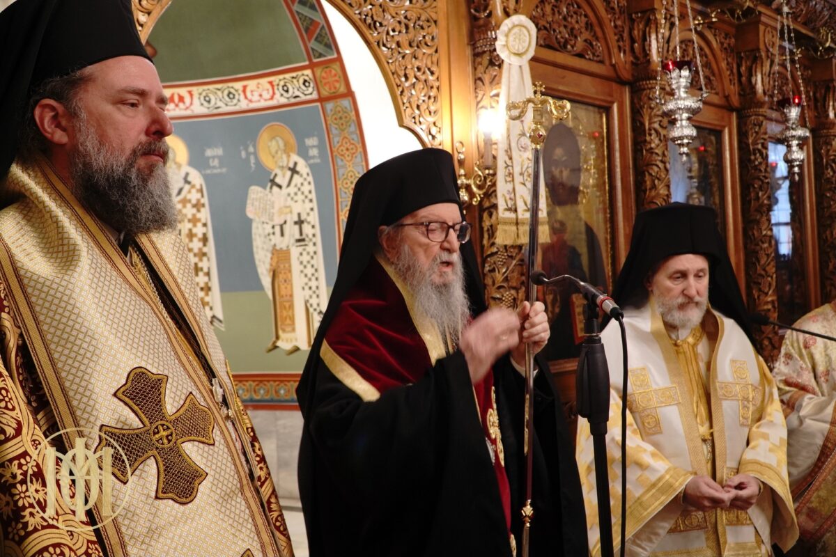 Στο Ιερό Βήμα παρέστη συμπροσευχόμενος ο Σεβασμιώτατος Αρχιεπίσκοπος πρώην Αμερικής κ. Δημήτριος.