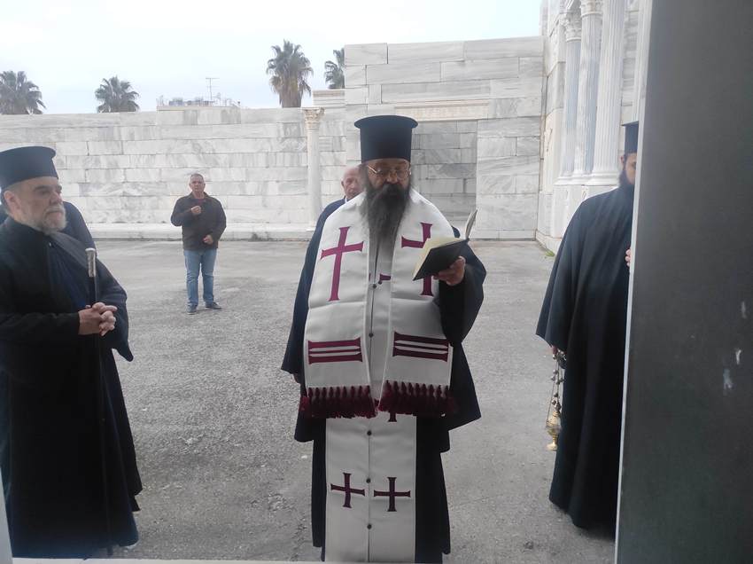 Πριν την έναρξη της Ι. Ακολουθίας ο Θεοφιλέστατος ετέλεσε Νεκρώσιμο Τρισάγιο επί του τάφου του κτίτορος του Ι. Ναού αοιδίμου Συγκέλλου π. Νίκωνος Κοτσόβολη.
