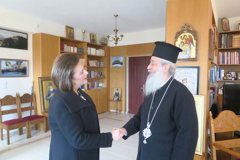 Ο Σεβασμιώτατος ευχαρίστησε την κ. Χρυσοβελώνη για την επίσκεψή της και για αρκετή ώρα είχε μαζί της μία μακρά συζήτηση επί διαφόρων θεμάτων που αφορούν τις σχέσεις Εκκλησίας – Πολιτείας.