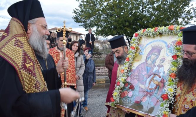 Με τη δέουσα θρησκευτική κατάνυξη και μεγαλοπρέπεια το Σάββατο 21 Ιανουαρίου 2023 ο Σεβασμιώτατος Μητροπολίτης Τρίκκης, Γαρδικίου και Πύλης κ. Χρυσόστομος, ο Ιερός κλήρος και ο πιστός λαός προϋπάντησε πανδήμως έμπροσθεν του παλιού Δημαρχείου Φαλώρειας στο Μικρό Κεφαλόβρυσο Τρικάλων το Αντίγραφο της Ιεράς Εικόνος της Παναγίας «Ρόδον το Αμάραντον».
