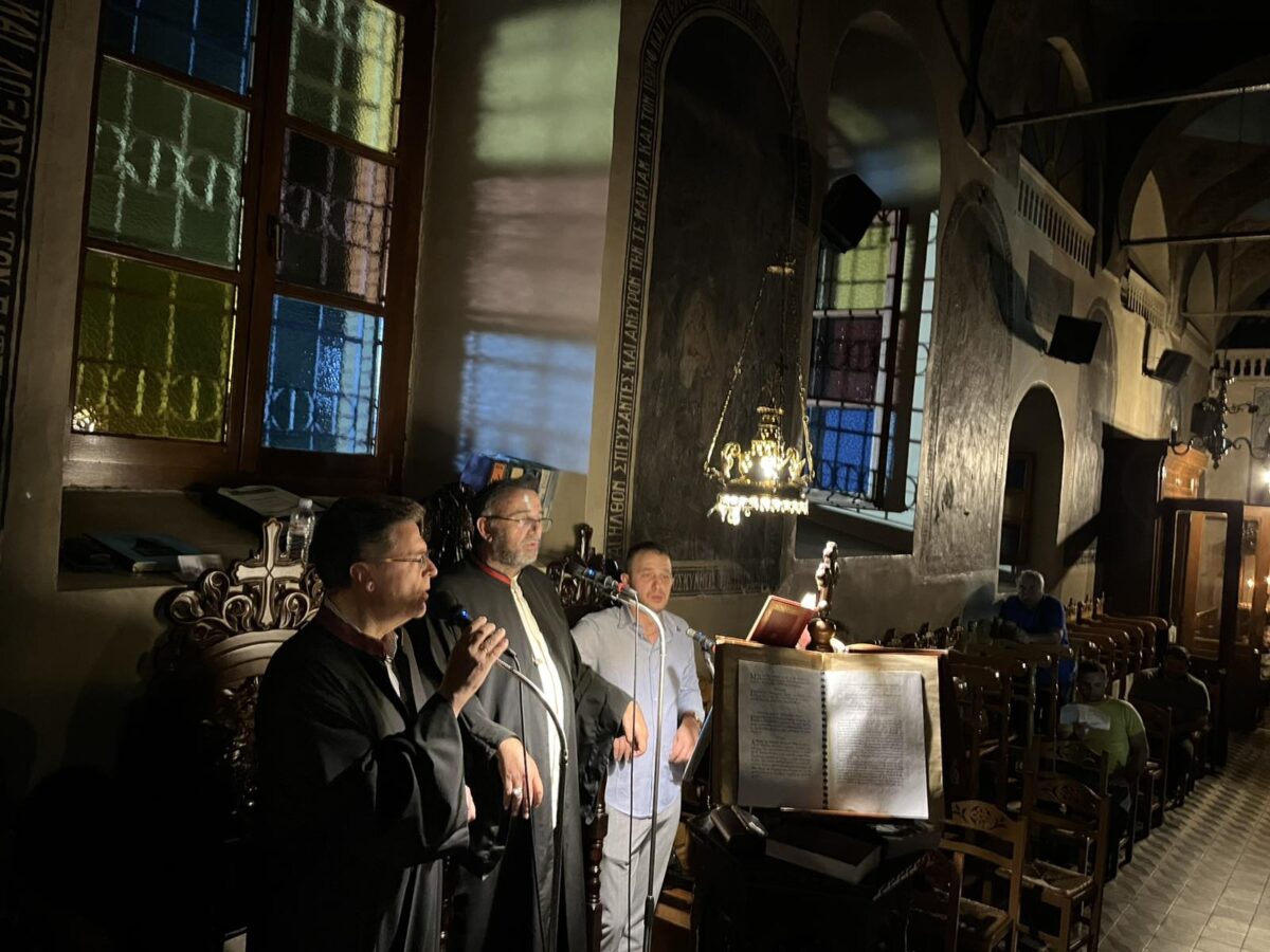 Έψαλε Χορός αποτελούμενος από τον Πρωτοψάλτη του ναού Υπ. Δρ. Αθανάσιο Δημητρίου, τον Τρικαλινό Πρωτοψάλτη και καθηγητή Βυζαντινής μουσικής Αθανάσιο Βαρσάμη που διακονεί το ιερό αναλόγιο του ναού Αγίων Κωνσταντίνου και Ελένης Τσερίου Λευκωσίας της Ι.Μ Ταμασού και Ορεινής, τον Λαμπαδάριο του ναού Πέτρο Ζησοπουλο και τον φέρελπι μαθητή της Σχολής Βυζαντινής μουσικής Τρικάλων Δημήτριο Ρουστα.
