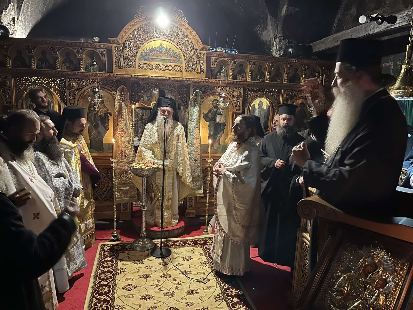 Προ της απολύσεως ο Σεβασμιώτατος τέλεσε Αρχιερατικό Τρισάγιο υπέρ αναπαύσεως του μακαριστού Αρχιεπισκόπου Αθηνών και πάσης Ελλάδος κυρού Χριστοδούλου, επί τη συμπληρώσει 15 ετών από της κοιμήσεώς του.
