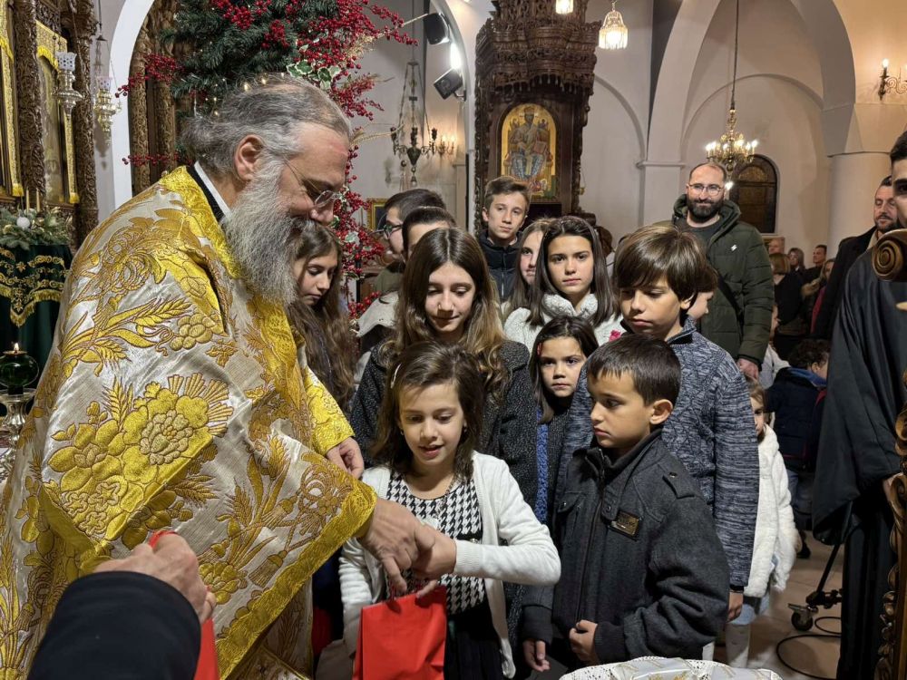 Η συγκινητική αυτή στιγμή γέμισε με χαρά τον ναό, ενώ ο Μητροπολίτης προσέφερε στα παιδιά πρωτοχρονιάτικα δώρα, εκφράζοντας την αγάπη και το ενδιαφέρον της Εκκλησίας για τη νεολαία.