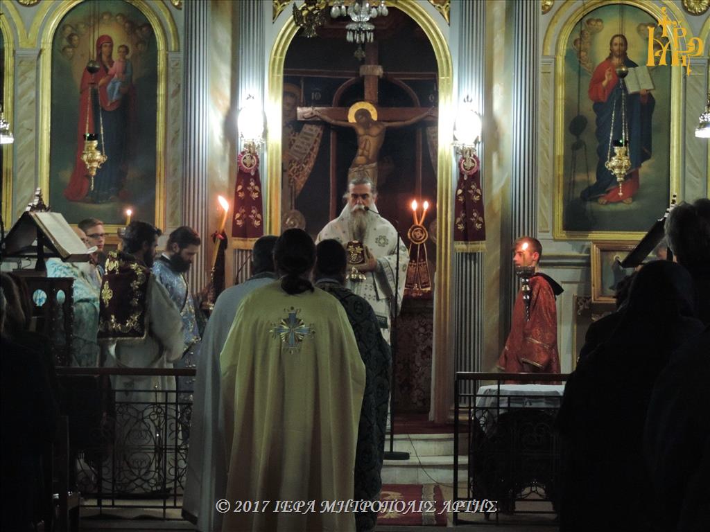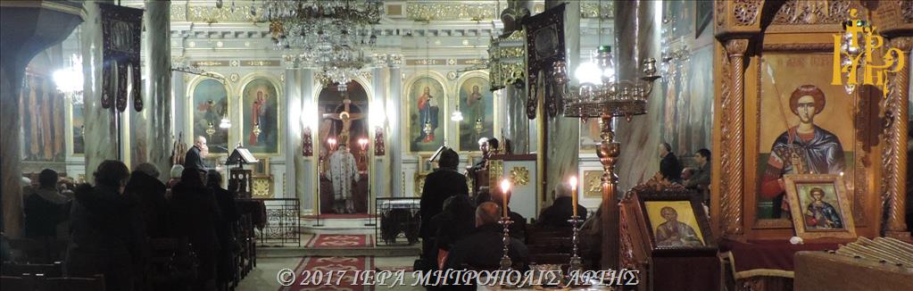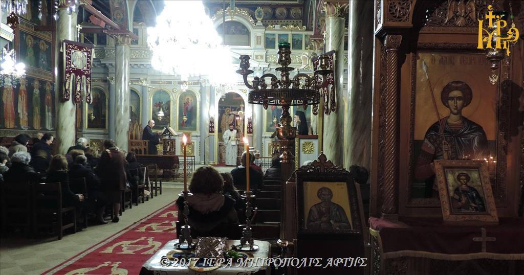 Την Τετάρτη το βράδυ, ξημερώνοντας Πέμπτη, 29 προς 30 Νοεμβρίου 2017, ετελέσθη πανηγυρική Ιερά Αγρυπνία, επί τη μνήμη του Αγίου Ενδόξου Αποστόλου Ανδρέου του Πρωτοκλήτου, στον ενοριακό Ιερό Ναό Αγίου Γεωργίου της πόλεως Άρτης, προεξάρχοντος του επιχωρίου Μητροπολίτου κ. Καλλινίκου.