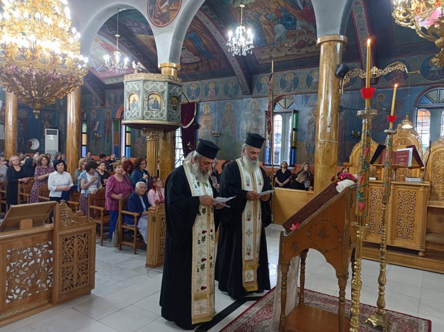 Μετά την υποδοχή των ιερών Σεβασμάτων υπό του Πανοσιολογιωτάτου Αρχιμανδρίτου π. Αμφιλοχίου Παπανδρέου, Πρωτοσυγκέλλου της Ιεράς μας Μητροπόλεως, τελέσθηκε η ακολουθία του Εσπερινού μετά της ιεράς Παρακλήσεως του Αγίου.