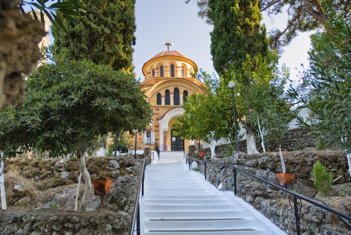 Η αθρόα προσέλευση των πιστών, εξαιτίας των πολλών θαυμάτων του Αγίου, οδήγησε στην απόφαση κατεδάφισης του μικρού εξωκκλησίου και την οικοδόμηση στη θέση του το 1970 νέας μεγαλοπρεπούς εκκλησίας στον αρχιτεκτονικό τύπο του ελεύθερου σταυρού με τρούλο. Ο νέος ναός αποτελεί και το καθολικό της Ιεράς Μονής, τα εγκαίνια του οποίου πραγματοποιήθηκαν το 1974, από τον Μητροπολίτη Ρόδου Σπυρίδωνα.