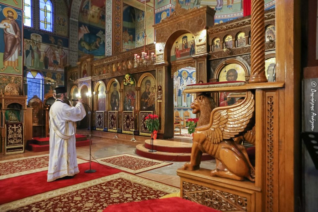 Στον Πανηγυρίζοντα Ιερό Ναό της ομωνύμου πολυπληθούς Ενορίας των Γαλανέικων Λαμίας, ο Πανηγυρικός Εσπερινός τελέσθηκε κεκλεισμένων των θυρών ενώ προηξήρχε ο Προϊστάμενος της Ενορίας και Πρωτοσύγκελλος της Ιεράς Μητροπόλεως Πανοσιολ. Αρχιμ. π. Άγγελος Ανθόπουλος, ο οποίος εκήρυξε και τον Θείο Λόγο.