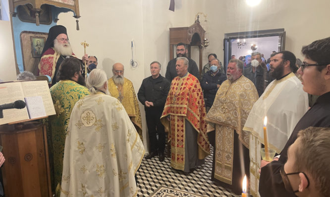 O Μητροπολίτης Ιεραπύτνης και Σητείας κ. Κύριλλος, περιστοιχούμενος από τον Ηγούμενο της Μονής Τοπλού και Εφημερίους της περιοχής, χοροστάτησε κατά την ακολουθία του Μεγάλου Εσπερινού, ευλόγησε τους προσφερόμενους άρτους και κήρυξε κατάλληλα τον θείο λόγο.