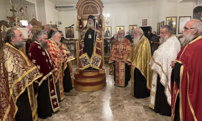 O Μητροπολίτης Ιεραπύτνης και Σητείας κ. Κύριλλος, περιστοιχούμενος από Εφημερίους της πόλεως και των περιχώρων, χοροστάτησε κατά την ακολουθία του Εσπερινού, ευλόγησε τους προσφερόμενους άρτους και κήρυξε κατάλληλα τον θείο λόγο.