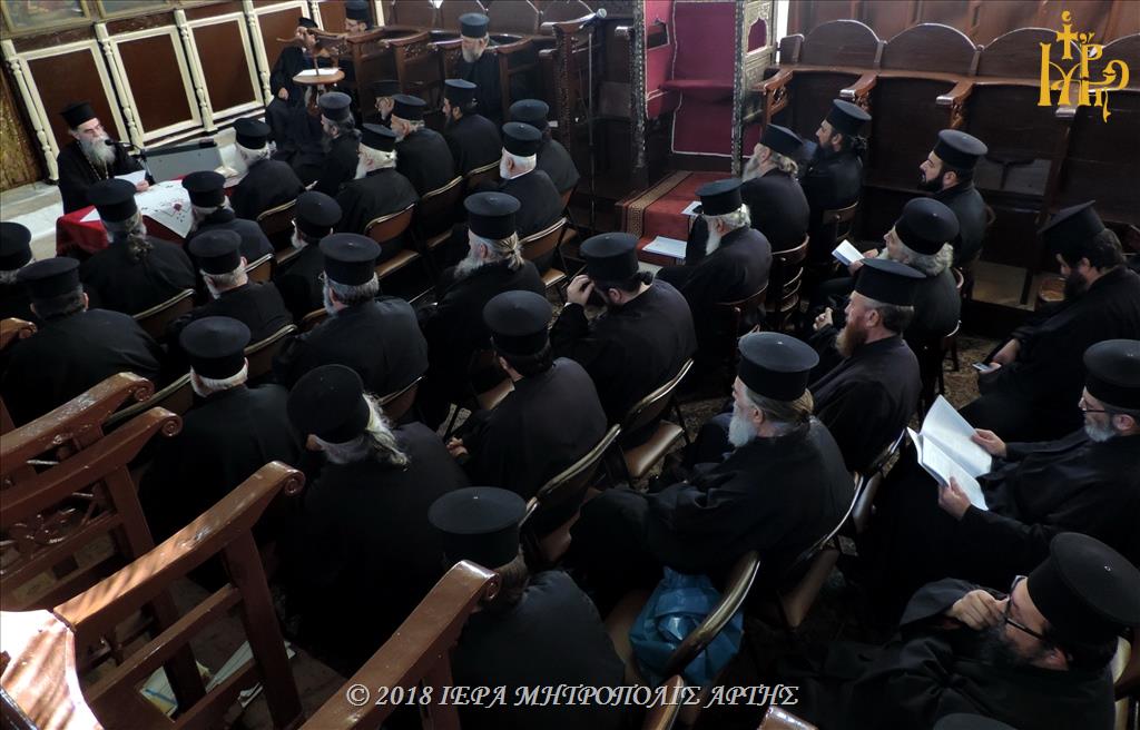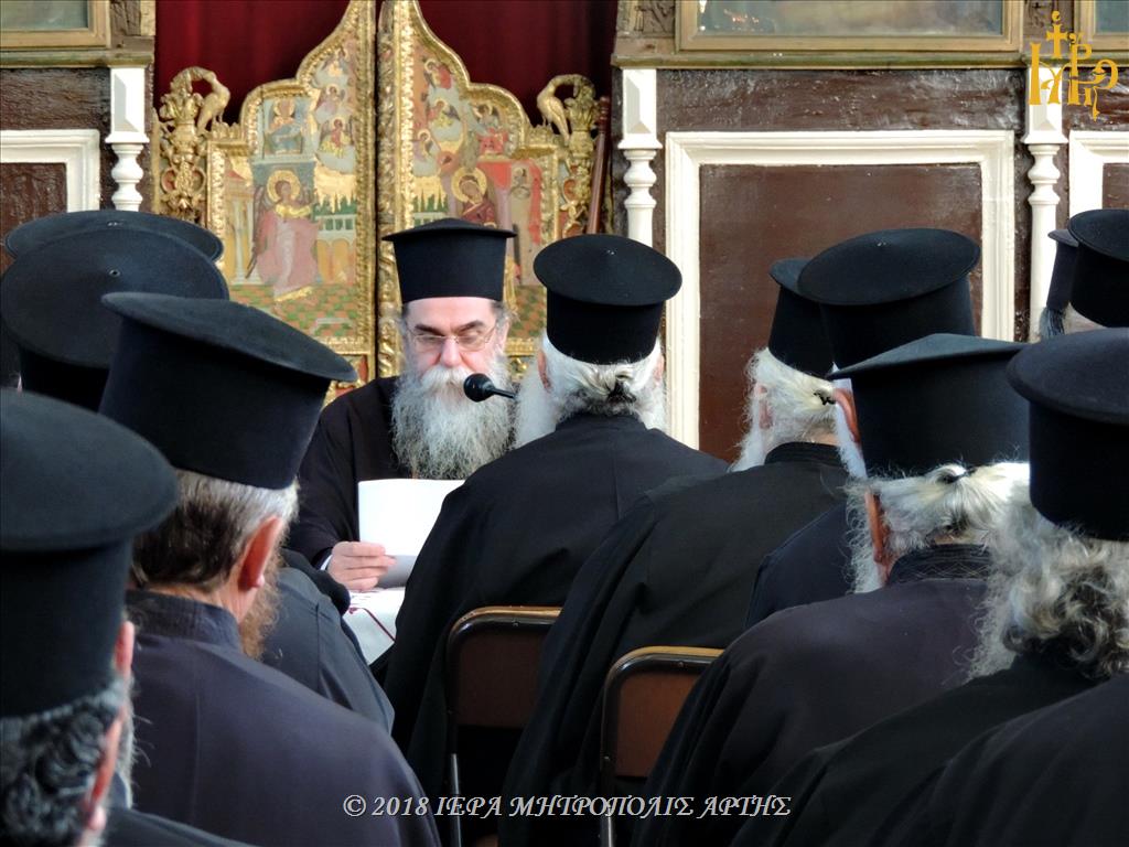 Πραγματοποιήθηκε σήμερα Τετάρτη 19 Δεκεμβρίου 2018, η τελευταία Ιερατική Σύναξη της Μητρόπολης Άρτης για το έτος 2018.