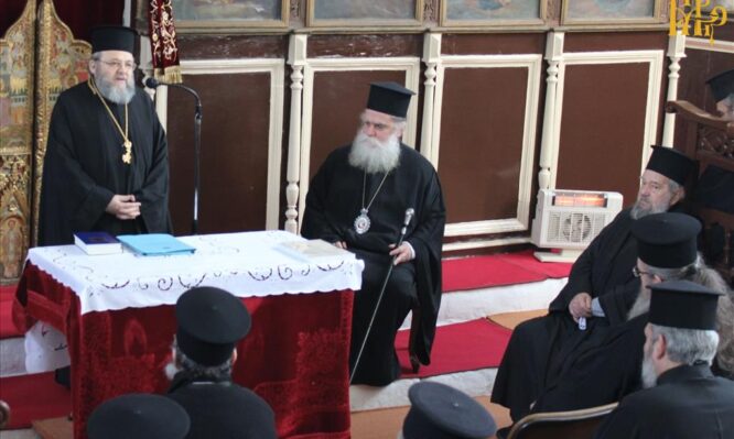 Στην αρχή ετελέσθη Τρισάγιο, υπέρ αναπαύσεως της ψυχής, του μακαριστού Αρχιεπισκόπου Αλβανίας κυρού Αναστασίου.