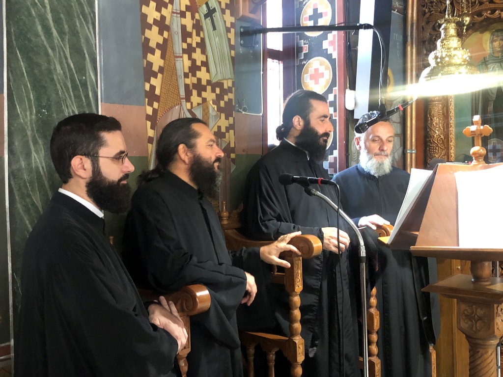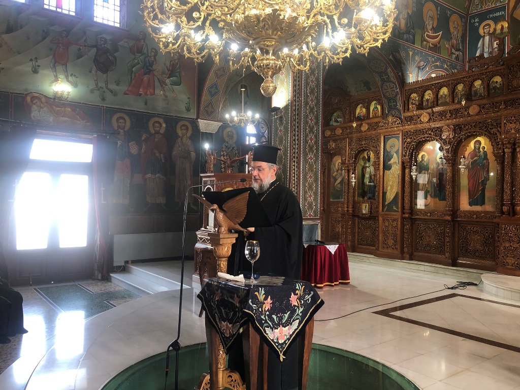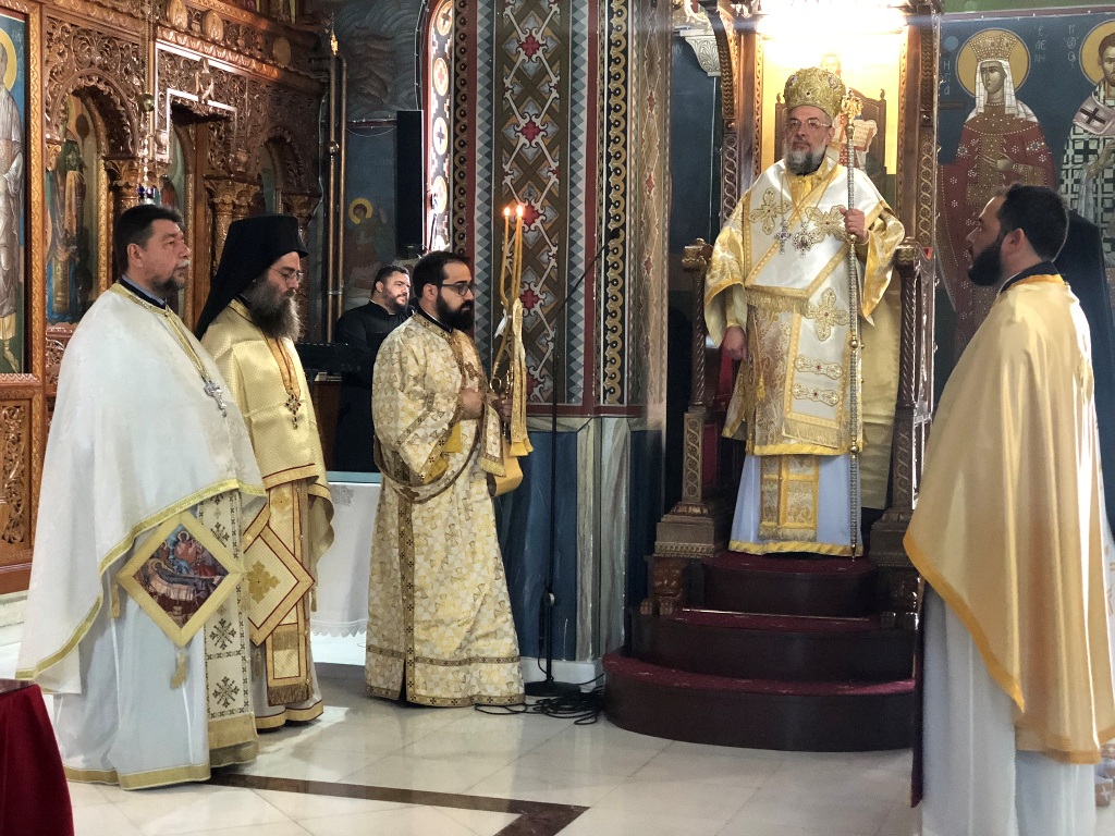 Το πρωί ετελέσθη η Θεία Λειτουργία, χοροστατούντος κατά τον Όρθρο και προεξάρχοντος της Θείας Ευχαριστίας του Μητροπολίτου Γόρτυνος και Μεγαλοπόλεως κ. Νικηφόρου, συλλειτουργούντων των Αρχιμ. Αιμιλιανού Χρήστου-Προϊσταμένου του Μητροπολιτικού Ι. Ναού Αγ. Δημητρίου Χαλκίδος, Νικολάου Πριμηκύριου-Ιερατικώς Προϊσταμένου της Ενορίας Αγ. Ιωάννου Χαλκίδος, του Πρωτοπρ. Σταματίου Μπασδέκη-Προϊσταμένου της Ενορίας Κοιμήσεως της Θεοτόκου Βασιλικού, του Πρεσβ. Αθανασίου Σάλιαρη-Εφημερίου της Ενορίας Αγ. Τριάδος Κάτω Στενής και του Διακ. Σταύρου Καλαφάτη, ενώ έψαλλαν χοροί αποτελούμενοι από Ιερείς υπό την διεύθυνση των Καθηγητών της Σχολής Βυζαντινής Μουσικής Πρωτοπρ. Αναργύρου Στουραΐτη και Οικον. Νικολάου Μάρκου.