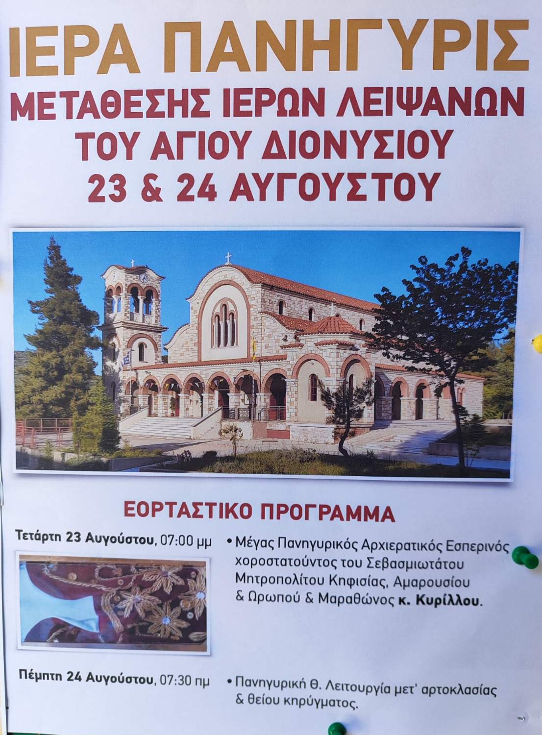 Οι εορτές του Αγίου Διονυσίου Αιγίνης και Κοσμά του Αιτωλού θα τελεστούν στη Μητρόπολη Κηφισίας σύμφωνα με το ακόλουθο εορταστικό Πρόγραμμα: