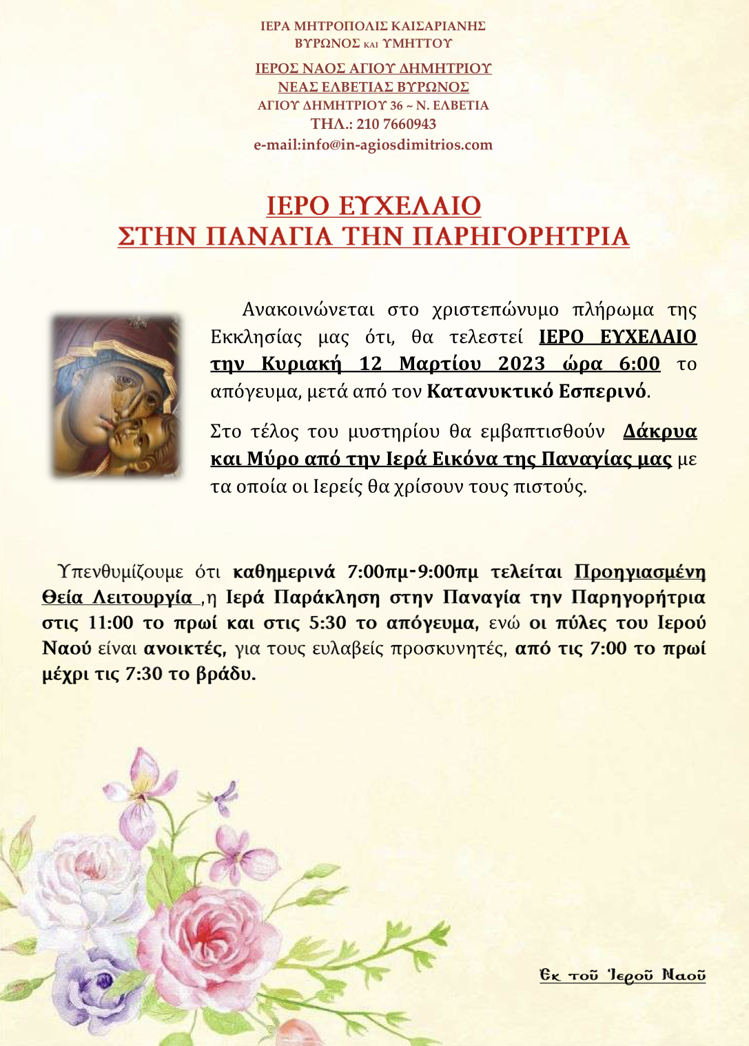 Ιερό Ευχέλαιο στην Παναγία την Παρηγορήτρια στο Βύρωνα