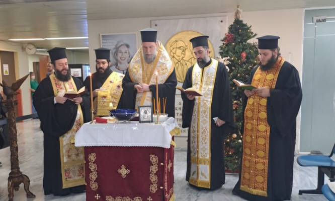 Μετά το πέρας του ιερού μυστηρίου ο Σεβασμιώτατος, με λόγια ενθαρρυντικά, επαίνεσε το θεάρεστο έργο των ιατρών και των νοσηλευτών και ευχήθηκε προς όλους για τις επικείμενες εορτές του Αγίου Δωδεκαημέρου, καθώς και ταχεία ανάρρωση στους δοκιμαζόμενους ασθενείς.