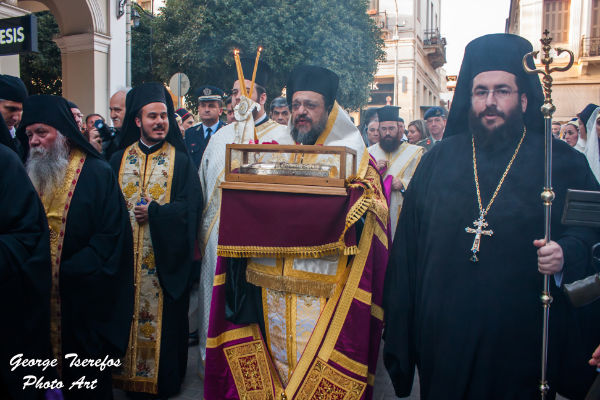 Σε κλίμα κατάνυξης και συγκίνησης και με την παρουσία πλήθους πιστών, η πόλη της Καλαμάτας υποδέχθηκε την τιμία χείρα του Αγίου Νεκταρίου, προερχόμενη από την ομώνυμη Ιερά Μονή της Νήσου Αιγίνης.