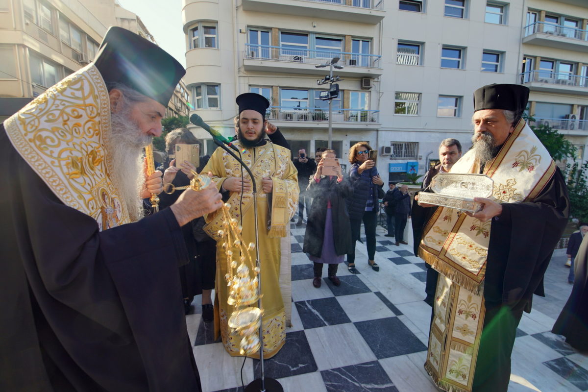 Αμέσως μετά την Δέηση και την Πανηγυρική Δοξολογία που εψάλη, ο Σεβασμιώτατος Μητροπολίτης Πειραιώς κ.Σεραφείμ εξέφρασε την ευγνωμοσύνη του προς τον Πανάγιο Θεός ο Οποίος επέτρεψε αυτή την ευλογία επί τη πανηγύρει του Πολιούχου Πειραιώς Αγίου Σπυρίδωνος, υπογραμμίζοντας παράλληλα πως ο Άγιος Σπυρίδων υπήρξε για την πόλη του Πειραιά ο υλικός και ηθικός σιτοδότης στα χρόνια της δουλείας.