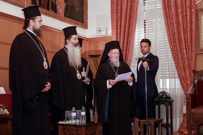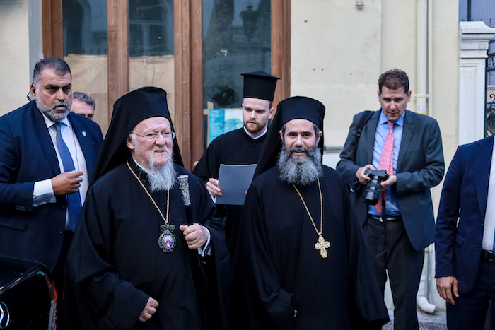 Τον Πατριάρχη συνόδευαν οι Μητροπολίτες Γέρων Χαλκηδόνος κ. Εμμανουήλ, Λαοδικείας κ. Θεοδώρητος, Διευθυντής του Γραφείου Εκπροσωπήσεως του Οικουμενικού Πατριαρχείου στην Αθήνα, Ιεραπύτνης και Σητείας κ. Κύριλλος, οι Πανοσιολ. Μ. Εκκλησιάρχης κ. Αέτιος, Διευθυντής του Ιδιαιτέρου Πατριαρχικού Γραφείου, και Τριτεύων κ. Καλλίνικος.