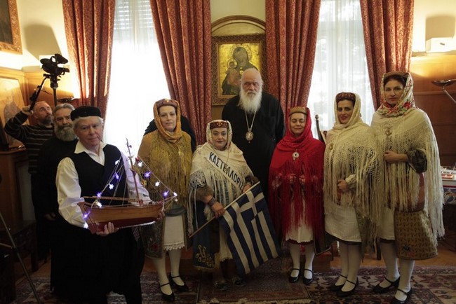 Συγκεκριμένα, σήμερα επισκέφθηκαν τον Αρχιεπίσκοπο για τα κάλαντα η Μουσικοχορευτική Ομάδα Καστελόριζου, ο Σύλλογος Αρβανίτικου Πολιτισμού Λιοσίων «Η ΓΡΥΖΑ», το Κέντρο Εκκλησιαστικής Διακονίας Οινοφύτων. Τα παιδιά του Κέντρου ευχαρίστησαν τον Αρχιεπίσκοπο για τη συμπαράστασή του, αλλά και τον Πρωτοσύγκελλο της Αρχιεπισκοπής Αρχιμανδρίτη Συμεών Βολιώτη για τη στήριξή του στο έργο του Κέντρου.