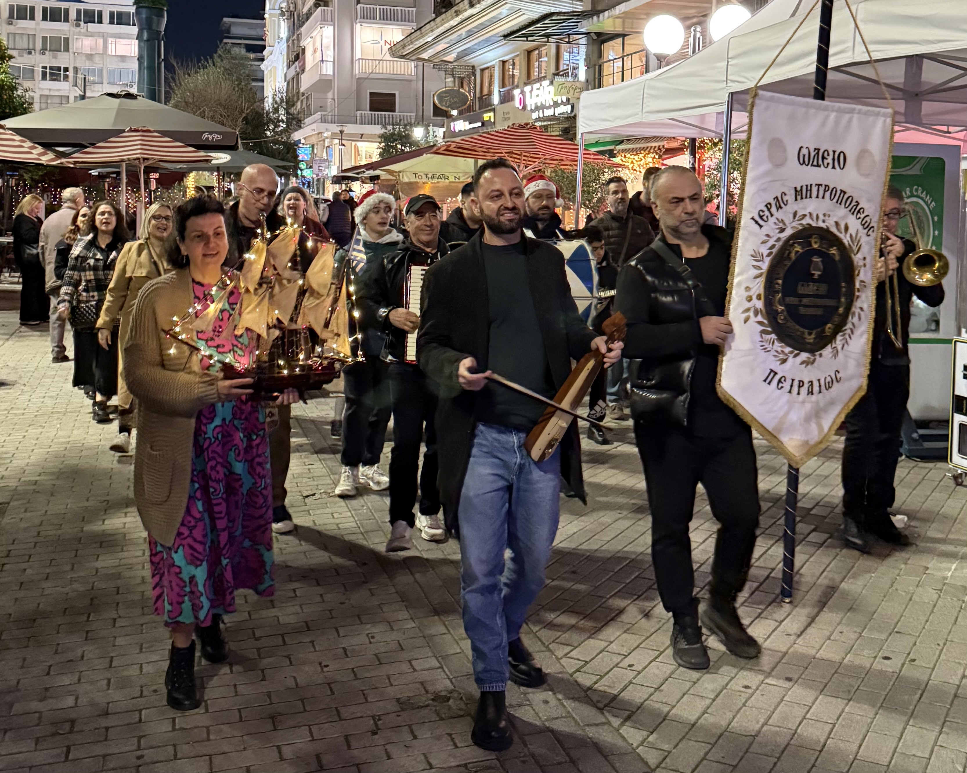 Στη συνέχεια, διανύοντας την πλατεία Κοραή, το Δημαρχείο, τον πεζόδρομο «Σωτήρος Διός», την Ηρώων Πολυτεχνείου, την Βασ.Γεωργίου και άλλες οδούς, οι μουσικοί πρωταγωνιστές άφησαν το εορταστικό αποτύπωμα που χρειαζόταν αυτές τις άγιες ημέρες, αφού σκόρπισαν κέφι και χαρά στον Πειραιά και τους δημότες του.